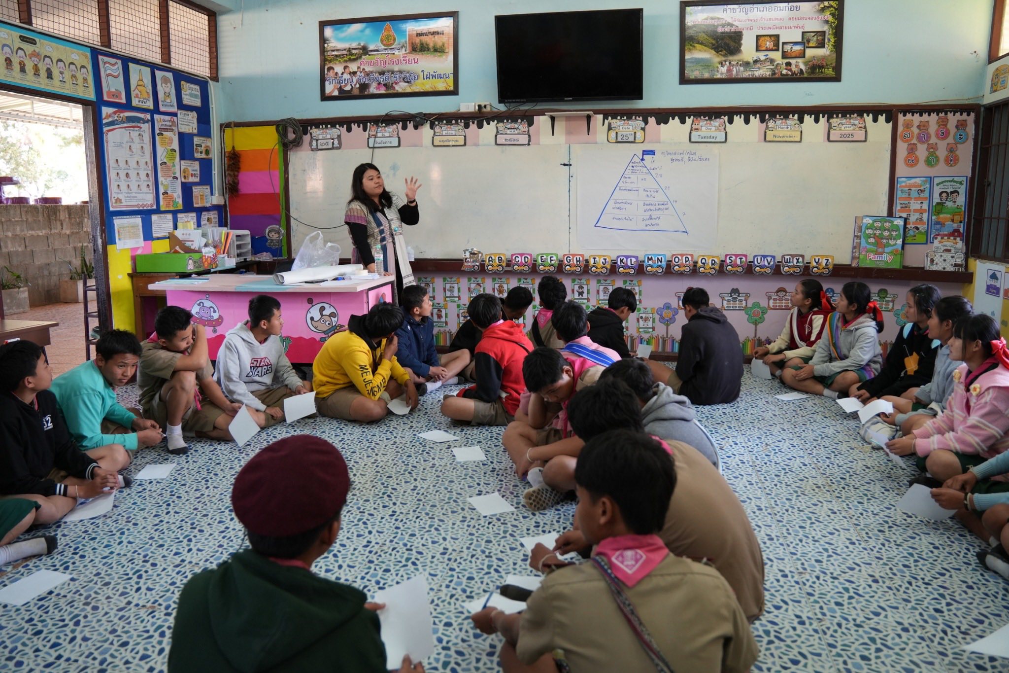 เมื่อวันที่ 25 – 26 พฤศจิกายน พ.ศ. 2568 ที่ผ่านมา มูลนิธิสร้างสรรค์อนาคตเยาวชน (Sangsan Anakot Yawachon Foundation) ร่วมกับ โรงเรียนบ้านตุงลอย อำเภออมก๋อย จังหวัดเชียงใหม่ ได้จัดกิจกรรมอีกหนึ่งกิจกรรมที่สำคัญ ภายใต้โครงการส่งเสริมการรู้เท่าทันสื่อและสิทธิทางดิจิทัลสำหรับเด็กและเยาวชนชนเผ่าพื้นเมือง โปรแกรม Feminist, human rights and digital rights education สำหรับเด็กนักเรียนระดับชั้นประถมศึกษาปีที่ 5 และ 6 จำนวนกว่า 80 คน
